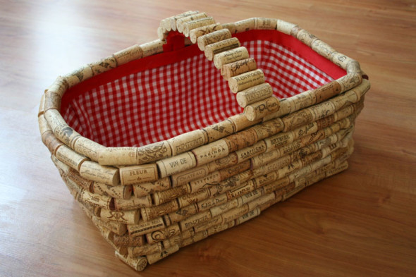 Recycle those old wine corks you've been saving! Use them to create a charming picnic basket, centerpiece, or housewarming gift.